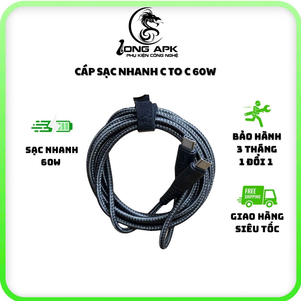 - - Giao diện được nâng cấp và tăng cường có thể chịu được uốn cong hoặc xô nhiều lần để tránh gãy.- Nhận diện mọi thiết bị một cách thông minh và có thể tương thích hoàn hảo với mọi dòng điện thoại.- Sẽ không cản trở tay nữa trong khi sạc để chơi game hoặc xem video thoải mái hơn.- Cổng Type-C to Type-C giúp truyền dữ liệu max nhanh- Lõi cáp cao cấp, tận hưởng mạng tốc độ cao.- Trở kháng siêu thấp, cáp dày tiết diện lớn- Tất cả các thành phần được làm bằng vật liệu môi trường, xử lý không có keo, không gây ô nhiễm và tốt cho sức khỏe hơn.